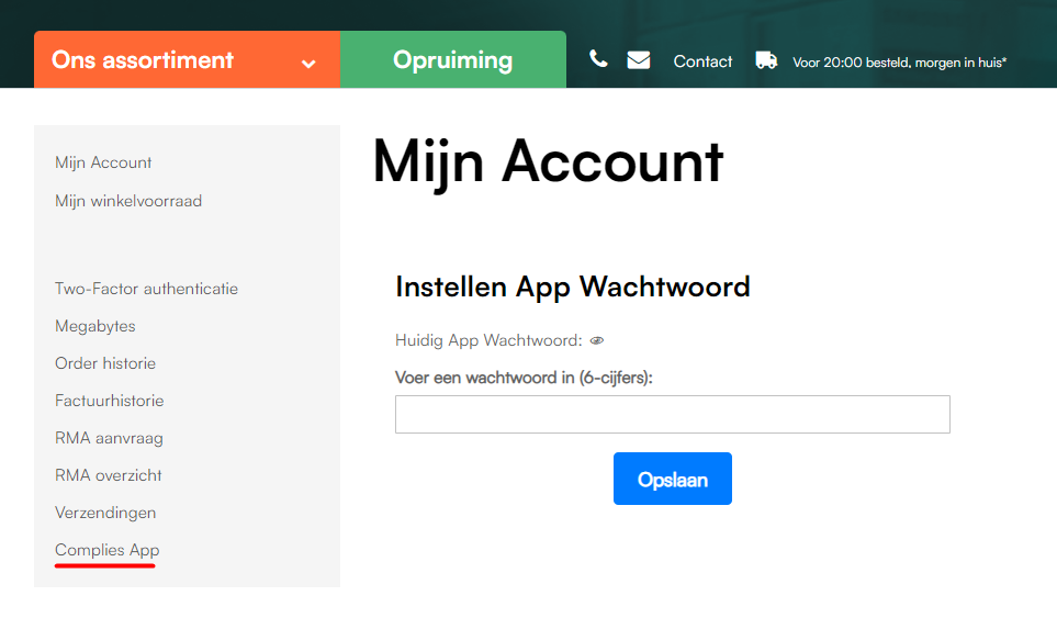 Heb je nog geen wachtwoord? Geen probleem! Je kunt deze eenvoudig aanmaken via je profiel op Complies.nl, onder het kopje: Complies App.