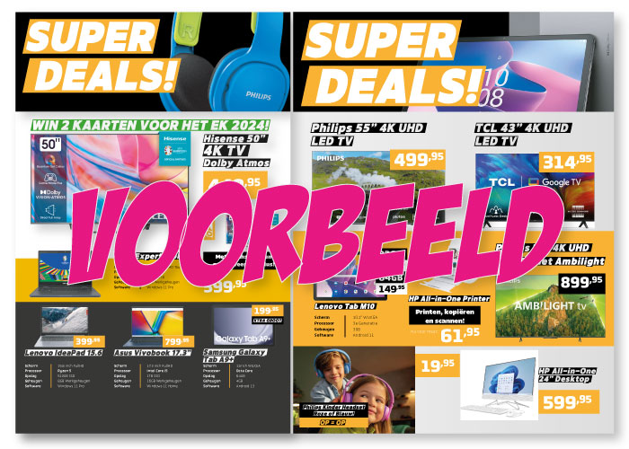 Tijdens het Europees Kampioenschap, de Olympische Spelen en de Tour de France vliegen laptops, tablets, smart-tv's en reisaccessoires als warme broodjes over de toonbank. En jij kunt daar deel van uitmaken met onze exclusieve Zomerflyer 2024 XL, boordevol met de meest gewilde items van het seizoen. De folder loopt vanaf 22 juni. Het inkoopvoordeel begint al op 12 mei!